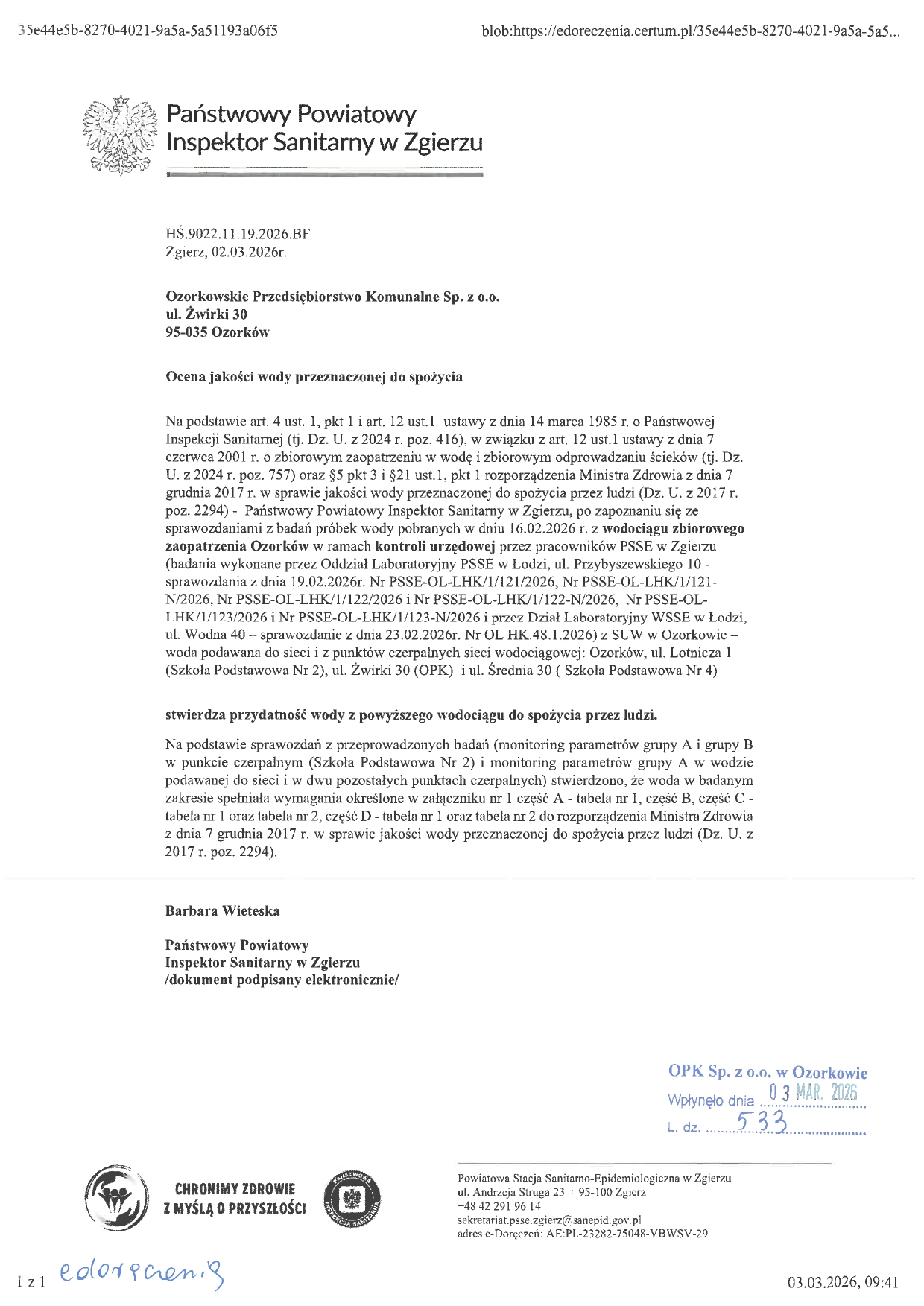 Ocena jakości wody przeznaczonej do spoż...